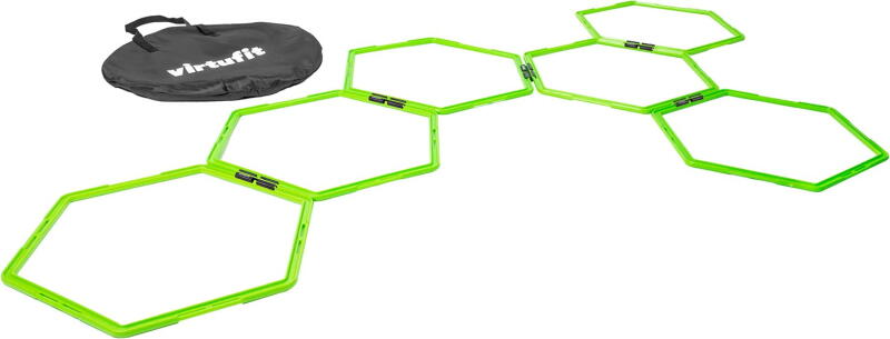 Virtufit Hexagon agility rács 6db leírása Növelje agilitását a Virtufit Hexagon agility rács segítségével. Ez a többfunkciós agility rács 6 hatszögből áll, amelyeket pályák, akadályok és egyéb minták létrehozására használhat. Gyakorlataitól függően ezek a hatszögek pillanatok alatt javítják a koordinációt, a robbanékony mozgásokat és az agilitási készségeket. Hat hatszög, tároló táskával A VirtuFit Hexagon Agility Grid 6 darab műanyag hatszögből álló készletből áll, praktikus tárolótáskában. A mellékelt fekete kapcsok segítségével könnyedén csatlakoztathatja az egyes hatszögeket. Befejezted a gyakorlatokat? Egyszerűen válassza le a hatszögleteket, és tegye vissza a zsákba. Készítsen végtelen mintákat Mivel a készlet különálló hatszögekből áll, amelyeket magad kötsz össze, minden kreativitásodat felhasználhatod a gyakorlatok kidolgozásakor. Hozzon létre egy gyorsító létrát úgy, hogy a gyűrűket egymás mellé helyezi, vagy távolabb helyezze őket egymástól, hogy gyűrűről gyűrűre ugorhasson. Ugorj előre, hátra, egy lábon vagy két lábon. A lehetőségek végtelenek, csak te döntöd el, mikor elég. Virtufit Hexagon agility rács tulajdonságai